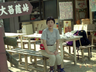 | 1996年8月今回は山梨県の日本百名山・大菩薩嶺(2,057m)に登る。 中央高速を勝沼インター→塩山→青梅街道→裂石温泉→上日川峠→福ちゃん荘前着、8台ぐらいの狭い駐車場があり、此処に駐車、9時登山開始だ、ロッジ長兵衛前にも広い無料駐車場がありトイレもある。福ちゃん荘前を出発して2コースに分かれる、左手の唐松尾根コースは急登坂路だ、下山に急坂を選ぶと膝を痛めやすいので登りは急な唐松尾根を、下山は緩やかな介山荘コースにした、標高差は357mなので初級者向き、頂上まで1時間40分。 |