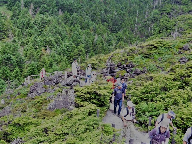 | 私の孫を連れて8人は雨池峠から縞枯山(2,403m)へトレッキング開始 | |