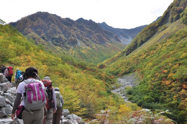 | 高度を稼ぐにつれて紅葉色が濃くなっていく、この分なら涸沢は素晴らしいだろうよ、わくわくする |