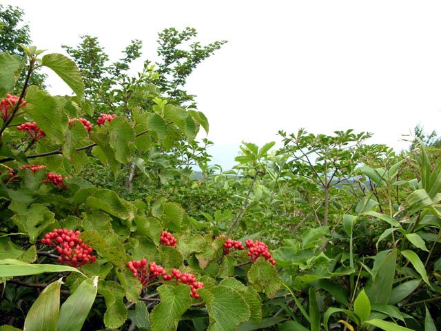 | 曇り時々晴れ、登山口の手前スキー場駐車場有(砂利)、此処に駐車してロープウエイ乗り場へ一般的なコース(右廻りで五葉松平・山頂・くろがね小屋・奥岳登山口に戻る)を廻る。 |