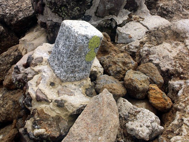 | 山頂と思われる乳首の手前に《安達太良山1,700m》の標識、はて?ここが山頂か?イヤこの先のはず |
