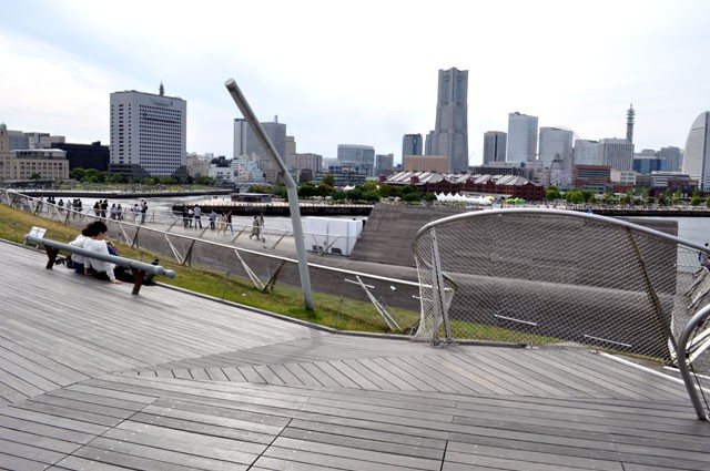 大桟橋埠頭の「くじらの背」から見る桜木町方面、赤レンガ倉庫